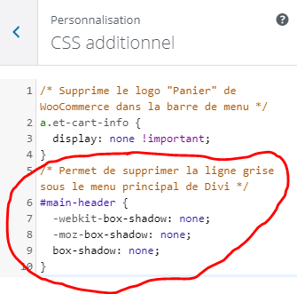 Divi : Supprimer la ligne grise sous le menu